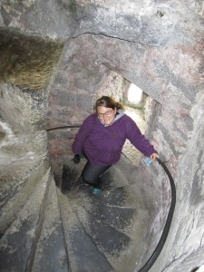 In the castle, the steps in these old castles were all built with the same ascending direction in order to give the defenders the upper hand in sword fighting.