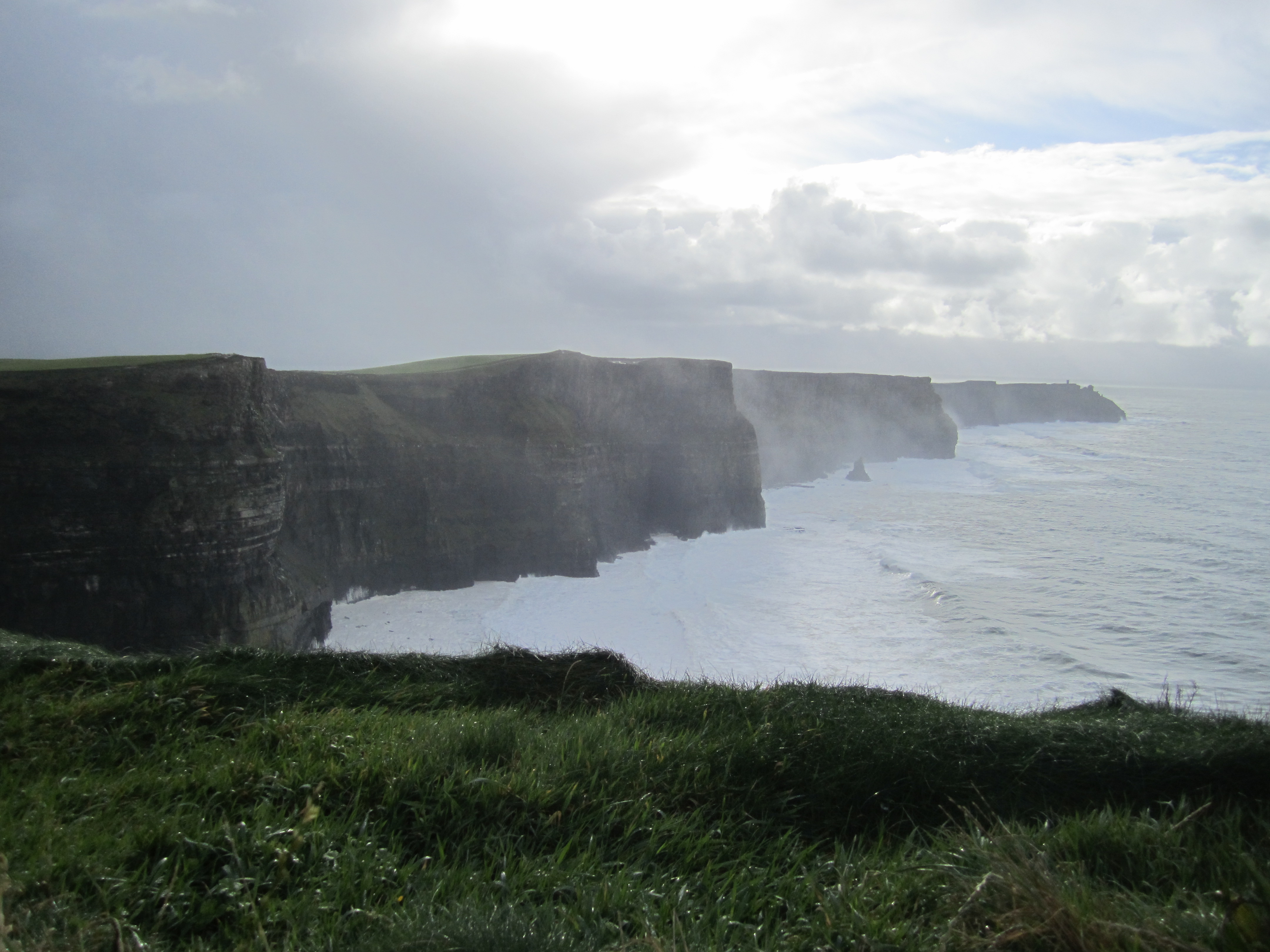 And finally, I FINALLY made it to the Cliffs of Moher. One of Ireland’s most popular natural wonders, that I lived the closest to for all of those weeks and never made it to. Funny little story…just before my tour bus was leaving I decided to run to the ATM down the road just in case. Just as I’m getting my money out, I turn and I recognize these two guys from Rainbow Hostel in Dingle! What are the chances! Greer and Nate from California just graduated high school in May, worked all summer to save money to backpack around Ireland for a month. I met them my last night in Dingle and we only spoke for about an hour or so as it was late at night and I left early the next day. Even funnier, they were getting money out for the same bus tour that I was going on! So I spent my day with these guys and we had a blast. They witnessed my never-ending clumsiness as I feel 4 times between the cliffs and the bus. In my defense it was raining and my boots had no traction on the slick pavement and muddy hills…ANYWAYS, it turned out to be a great day and the cliffs were absolutely breathtaking.